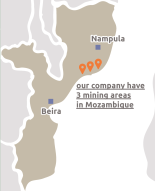 我们公司有3个采矿领域,在莫桑比克、非洲、复盖总面积的1,500平方公里。